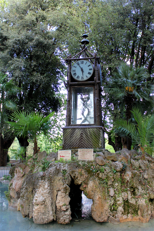 Qui ha inizio la teoria degli uomini illustri, la serie cioè di 228 busti commemorativi collocati a partire dal 1849. Alle spalle del belvedere è un grande slargo, sulla destra è situata la piccola statua di Raffaello Sanzio, realizzata nel 1838, mentre in asse con il piazzale è una fontana rotonda al centro del quale è stato posto nel 1868 il gruppo che rappresenta Mosè affidato alle acque del Nilo. Proseguendo si incontra il Viale dell’Orologio sul quale si trova l’orologio ad acqua il cui meccanismo è generalmente attribuito al padre domenicano Giovanni Battista Embriago. L’idrocronometro fu collocato nel 1873 nell’attuale posizione, al centro di un laghetto circondato da una cancellata di ferro.