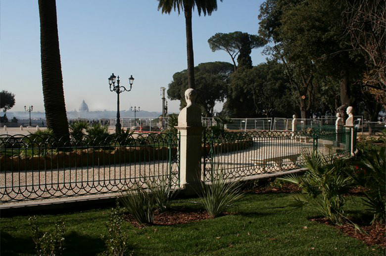 La passeggiata del Pincio è stata realizzata sull’omonimo colle, che già in epoca romana era sede di giardini. In origine il Pincio era detto “Colle dei Giardini”; in seguito venne a risiedervi la Gens Pinciana, dalla quale deriva il suo nome moderno. Fra gli Horti del Pincio erano particolarmente famosi quelli di Locullo, che fu il primo a costruirvi dei giardini a terrazze. Su questo colle sorse nel V sec. d.C. un grande palazzo imperiale, il Pinciano. Fra il 1810 e il 1908 sul colle venne costruita la passeggiata. Nel 1814 l’impero napoleonico si dissolse ma i lavori del Pincio, già iniziati secondo il progetto dell’architetto francese Berthault, proseguirono sotto il restaurato governo pontificio e furono diretti dal Valadier.